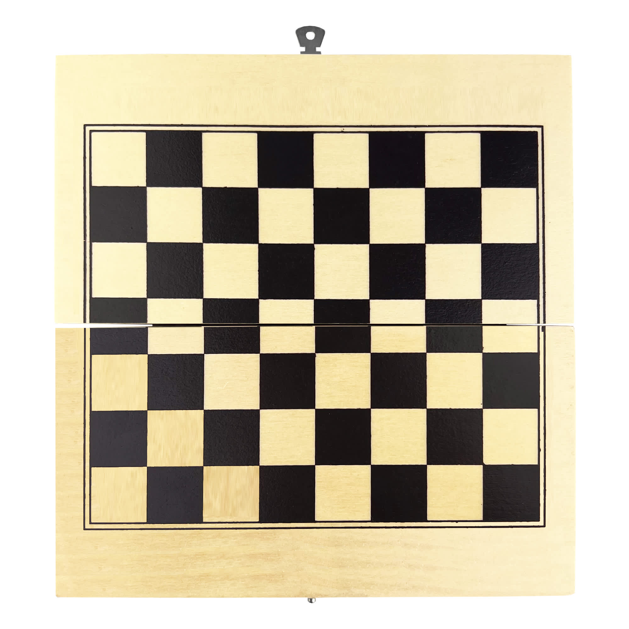 Portable wooden board game set which contains wooden pieces to play chess checkers and backgammon. Instructions provided. Manufactured from pine wood and has a large logo printing area on both front and back. A wonderful holiday gift for everyone!