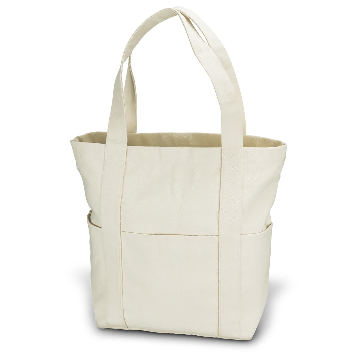 Classic canvas tote bag which is manufactured from 50% natural 450gsm cotton and 50% Polyester Canvas. It has a metal zip closure is concealed and can be hidden to ensure your belongings are safe. Other features include side pockets and front and back pockets for optimum storage.