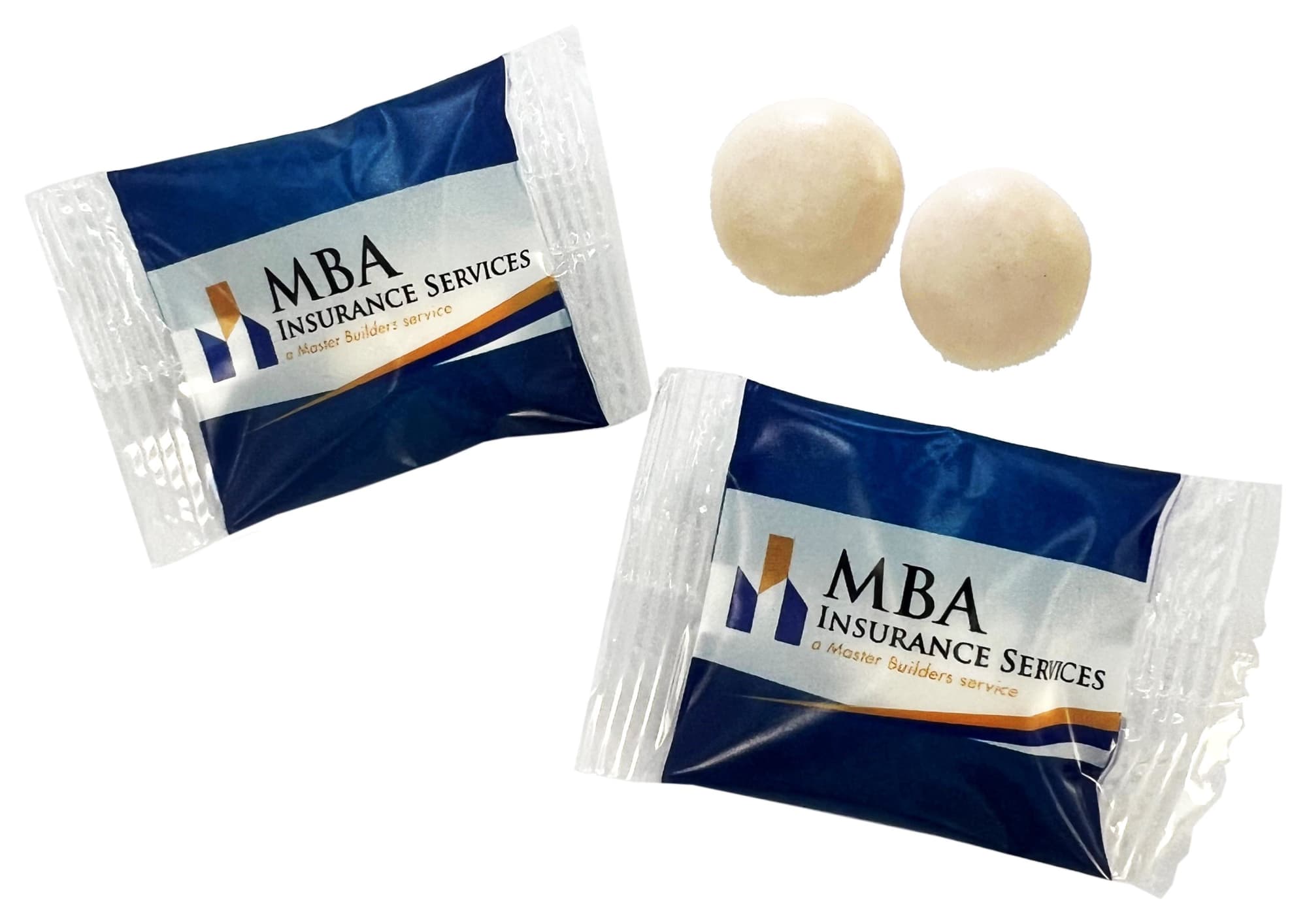 | Dimensions & Ingredients | 50mm x 40mm included wrapper 3g Chewy Mints Ingredients: Sugar, Corn Syrup, Hydrogenated Vegetable Oil (Palm Oil), Water, Apple Juice Concentrate, Citric Acid, Mint Flavour, Arabic Gum, Malic Acid, Carnauba Wax, Artificial Colours (E171). Packed in a facility that handles Nuts & Gluten. Best Before: Approx. 12 months |