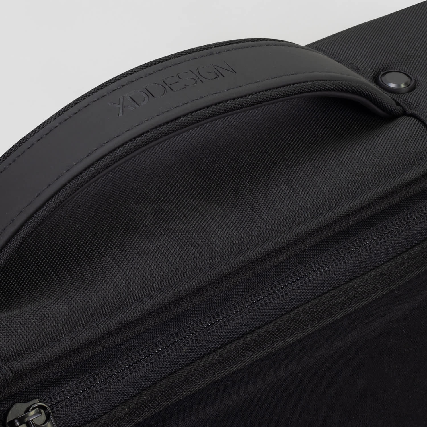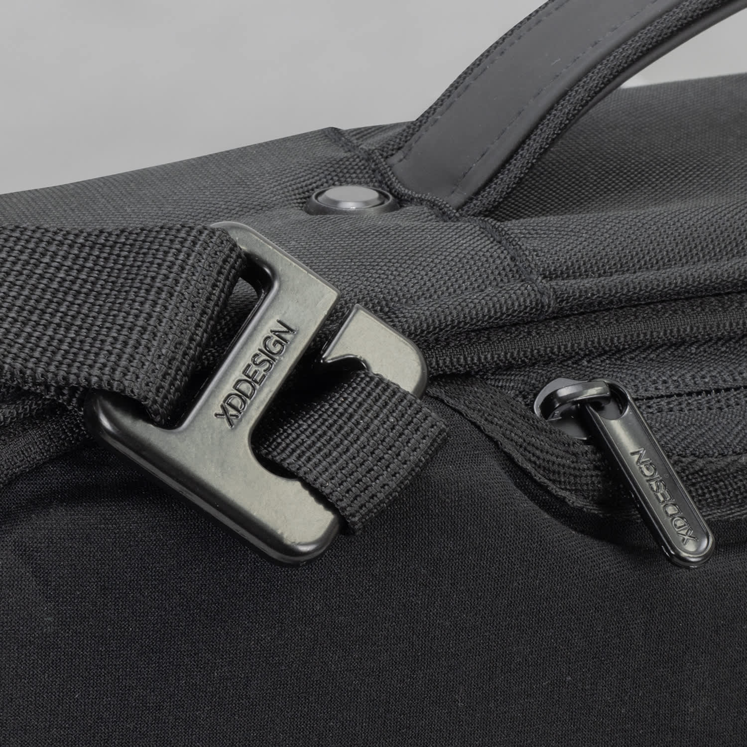 Exceptional 10L anti-theft backpack from XD that doubles as a secure briefcase, keeping belongings safe on daily commutes. Made from high-quality cut-resistant 900D polyester with PU coating and a reflective print, Bizz has two compartments padded with anti-shock foam that will fit a laptop up to 15.6″ and a tablet up to 10″. Easily attach a power bank to the built-in USB charging port to charge devices on the go. A built-in metal frame helps to protect items and ensure the bag retains its shape on any adventure. With a comfortable carry handle and padded shoulder straps that can be removed and stowed away, this versatile bag features an integrated zinc alloy lock, making it the perfect accessory for anyone on the go.