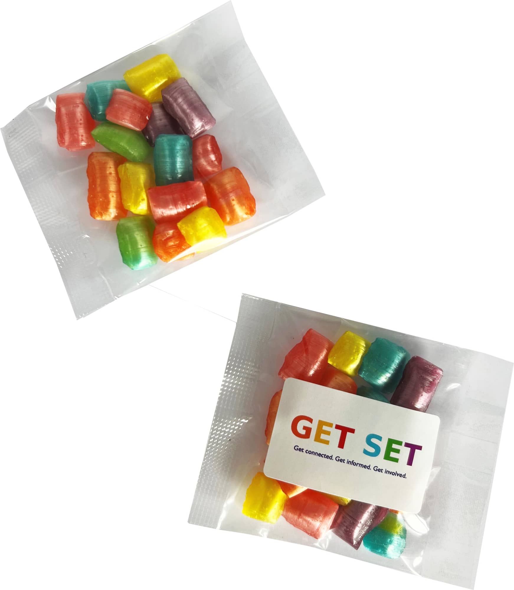 Corporate Coloured Humbugs in cello bag 20g (Normal or Tiny Size)