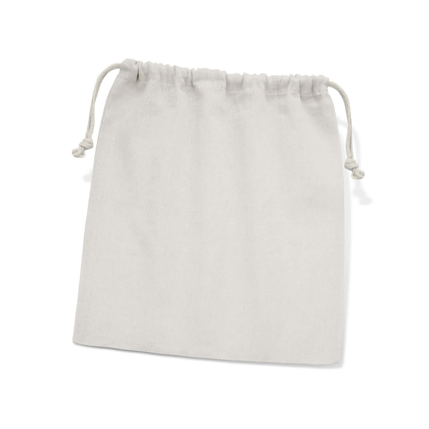 Medium size drawstring gift bag that is manufactured from 135gsm cotton.