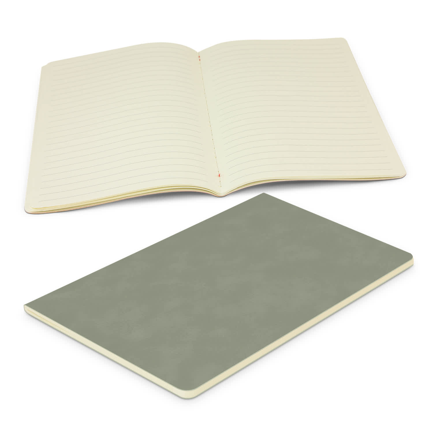 * Medium-sized (approximately A5) notebook with soft-touch leather-look PU cover