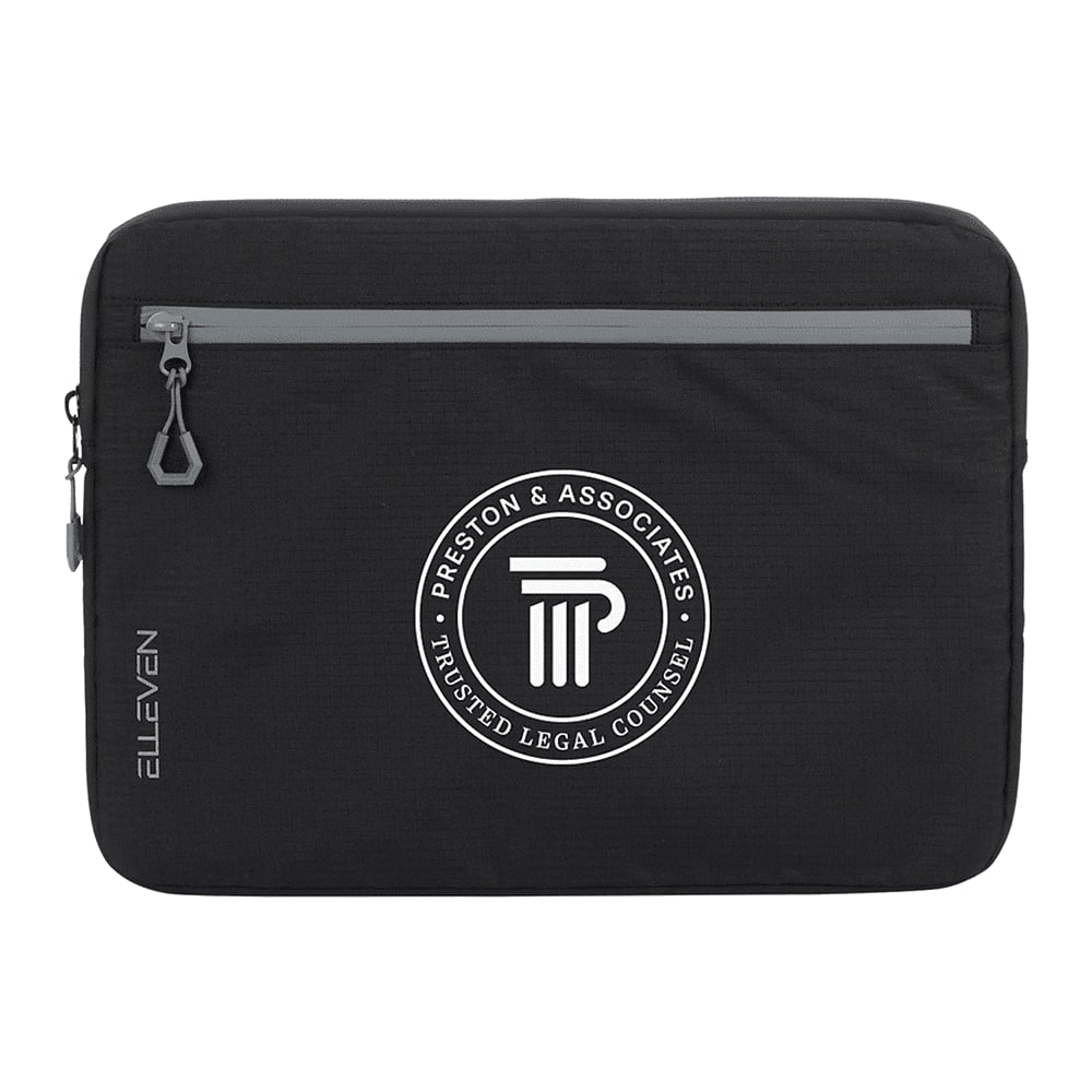 The elleven™ Recycled 16″ Laptop Sleeve is the ideal travel companion for your electronics, combining style and sustainability in a slim, modern design. It features both front and back zippered pockets to keep your essentials organized and within reach. Made with 100% 600D recycled PET, this sleeve offers a durable, eco-conscious solution for protecting your laptop.