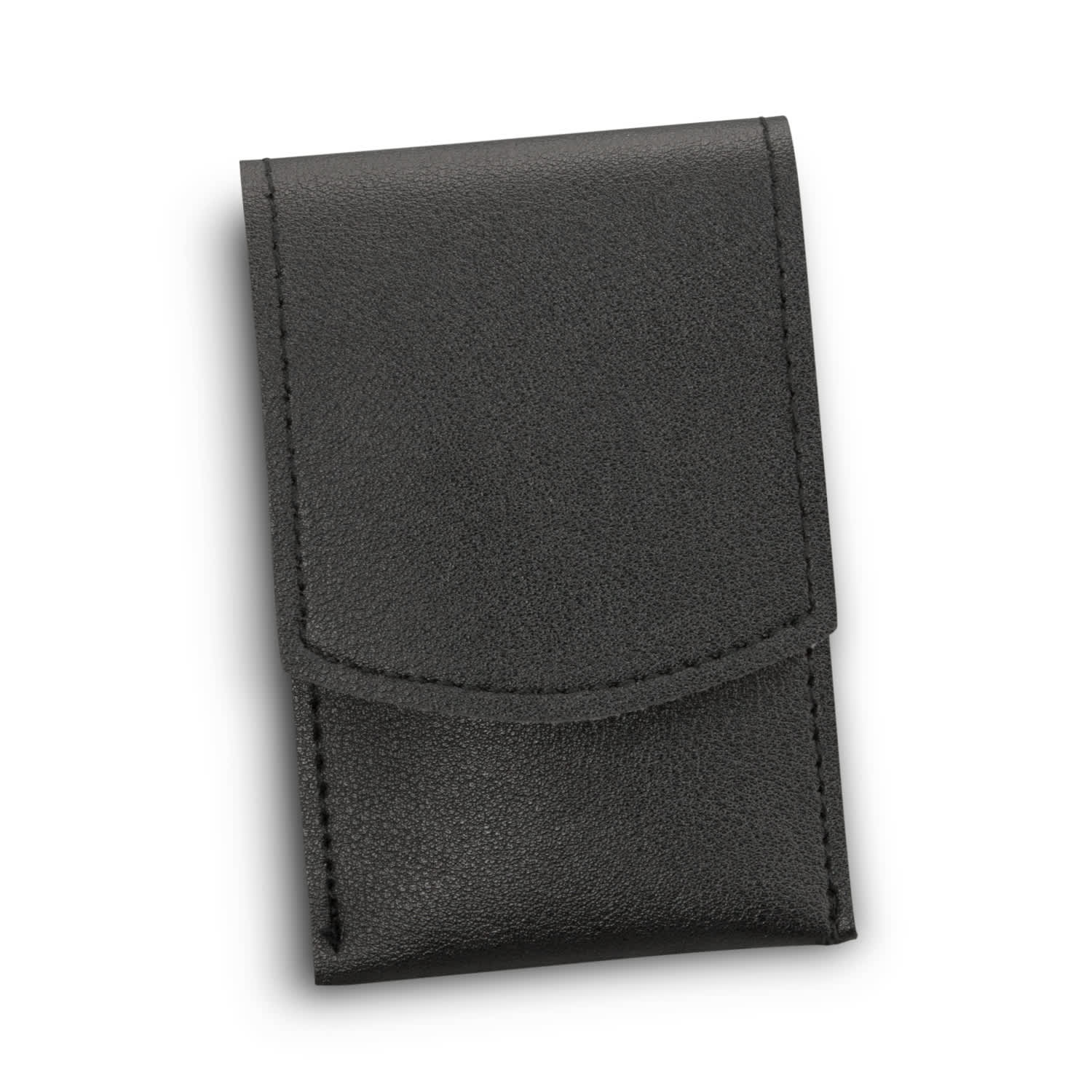 Premium manicure set which includes scissors, nail clippers, a nail file and a set of tweezers in a leather-look PU pouch. Branding is on the pouch which features a dome closure and smart matching stitching.