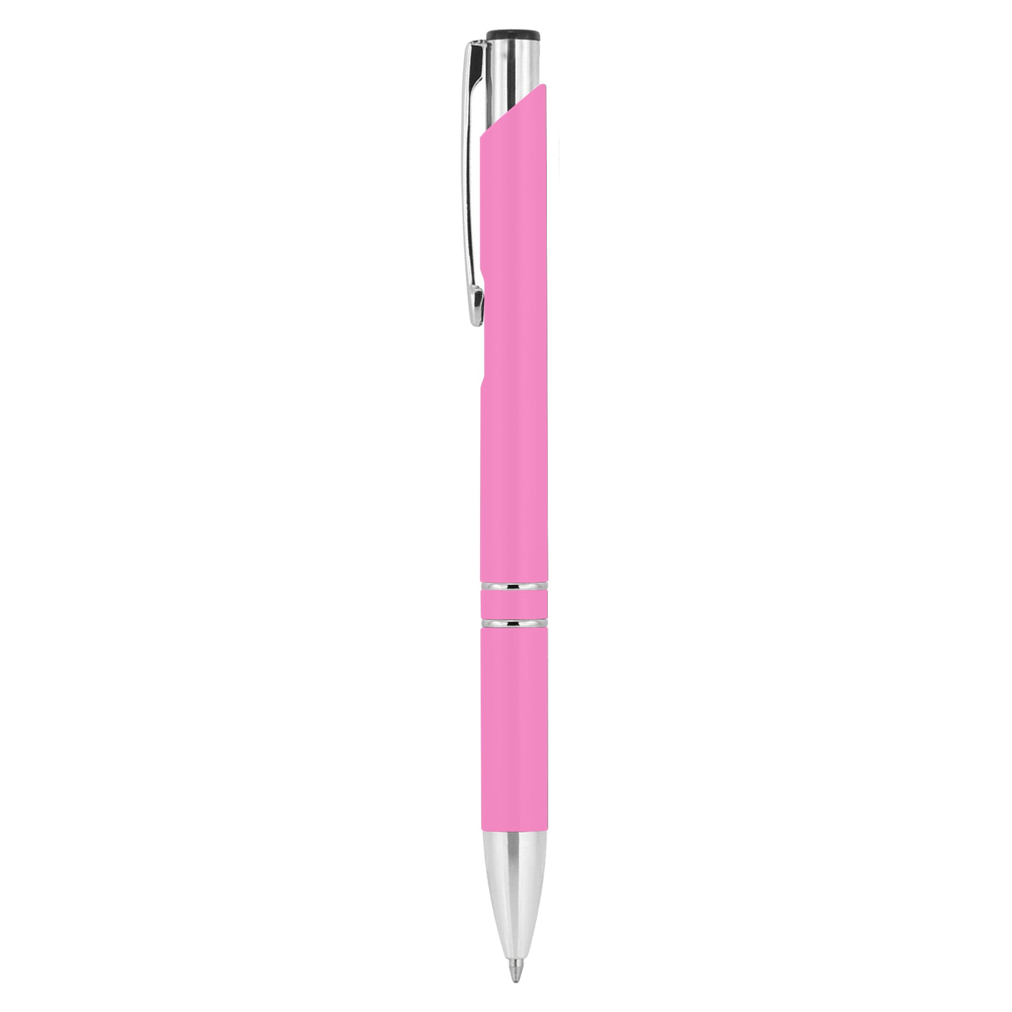 Popular aluminium stylish design pen with shiny silver fittings and soft-touch rubberized barrel click action with plastic Parker-Type German manufactured black ink refill 1200 meters writing distance tungsten carbide ball provides you with quality writing.