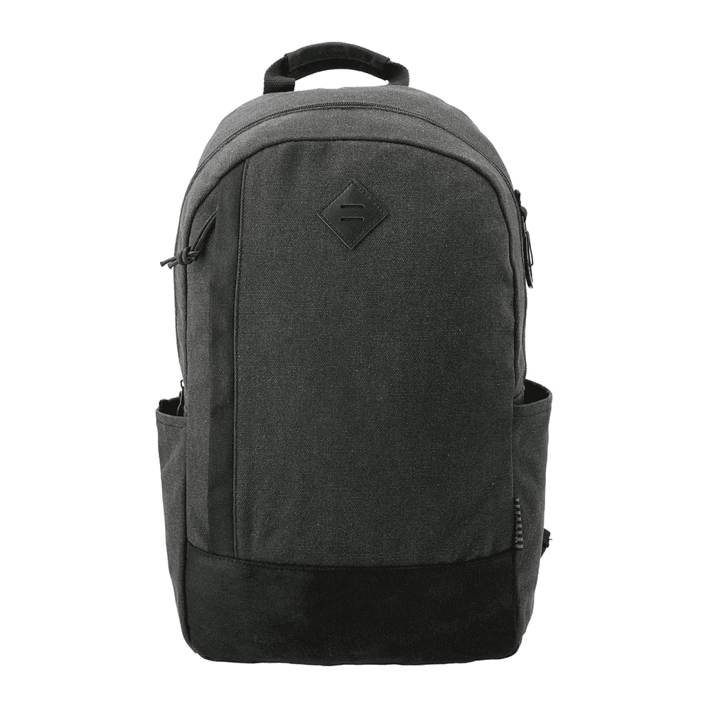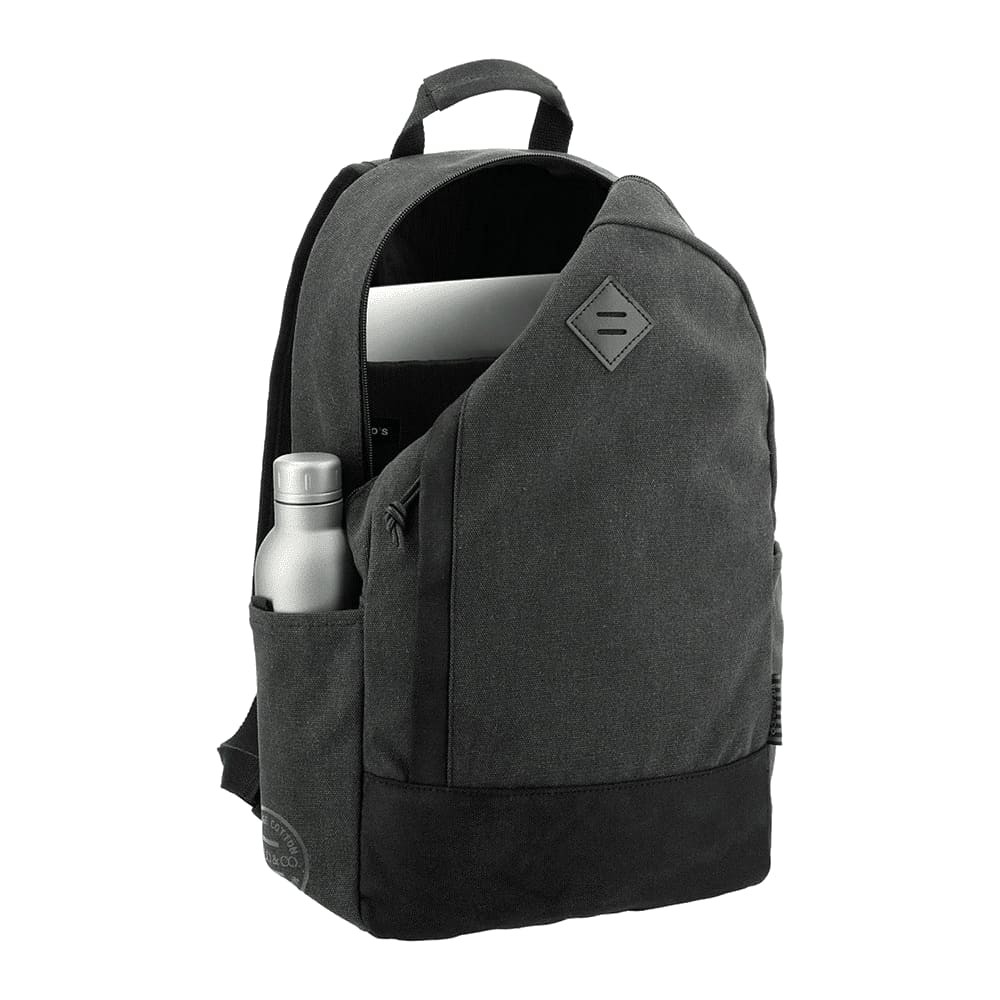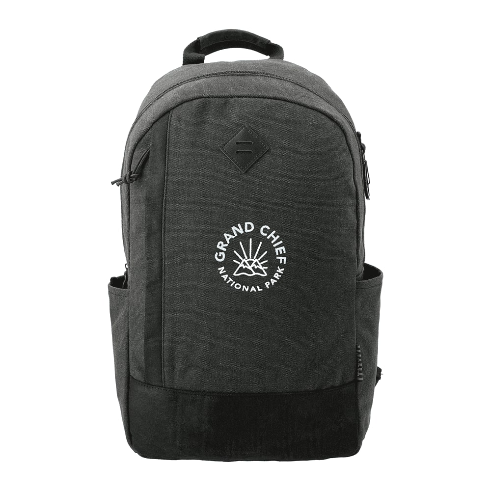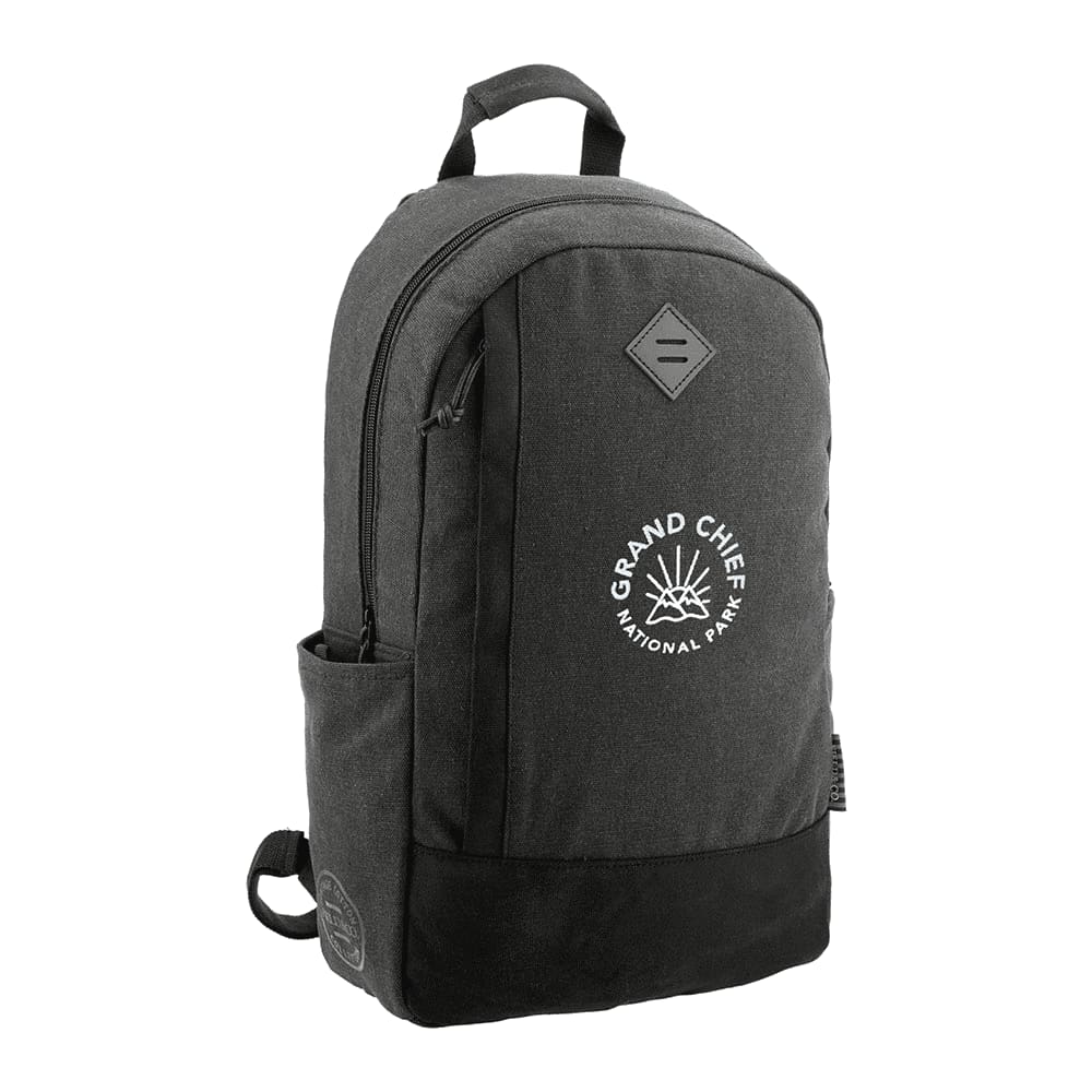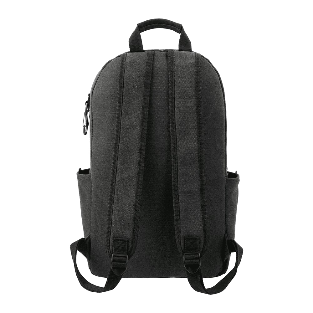The Field & Co. Woodland 15 inch computer backpack is constructed from rugged cotton canvas, featuring a custom wood grain lining, and contains a padded 15 inch laptop sleeve inside its zippered main compartment.