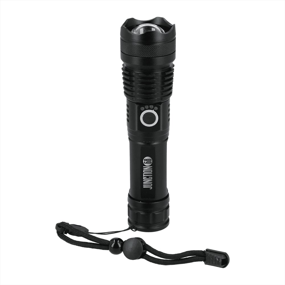 | Features | 200 lumen. micro-USB input port - Rechargeable flashlight torch and 200mm charging cable. 98% Recycled post consumer Aluminium + 2% other metal. 5 lighting modes: high, medium, low, fast flashing, and slow flashing. Telescopic zoom. 200mm charging cable. |
