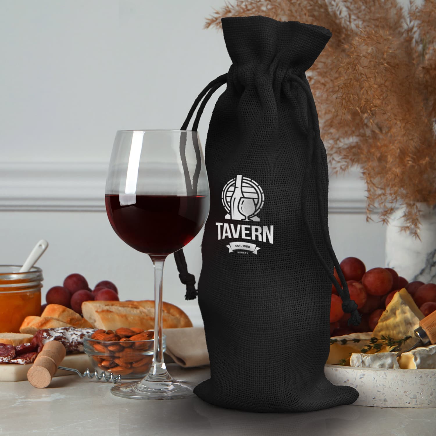 Jute Wine Drawstring Bag