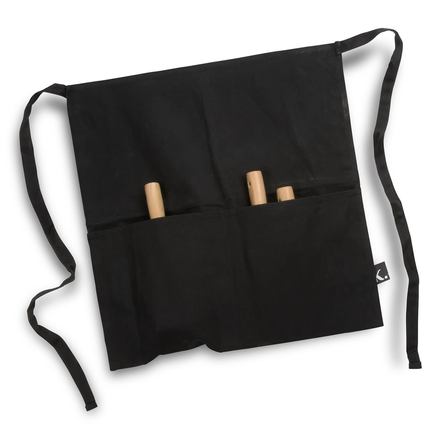 * Black cotton apron with front pockets for storing tools