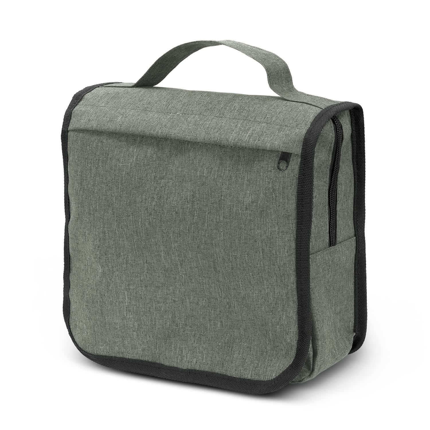 Lightweight toiletry bag with a two-tone heather style fabric finish and plenty of storage. It is manufactured from 300D polyester with a 210D polyester lining. Knox features a Velcro closure, two zippered mesh pockets and a zippered main compartment with a mesh window. It also has an external zippered pocket, a carry handle and a handy hook.
