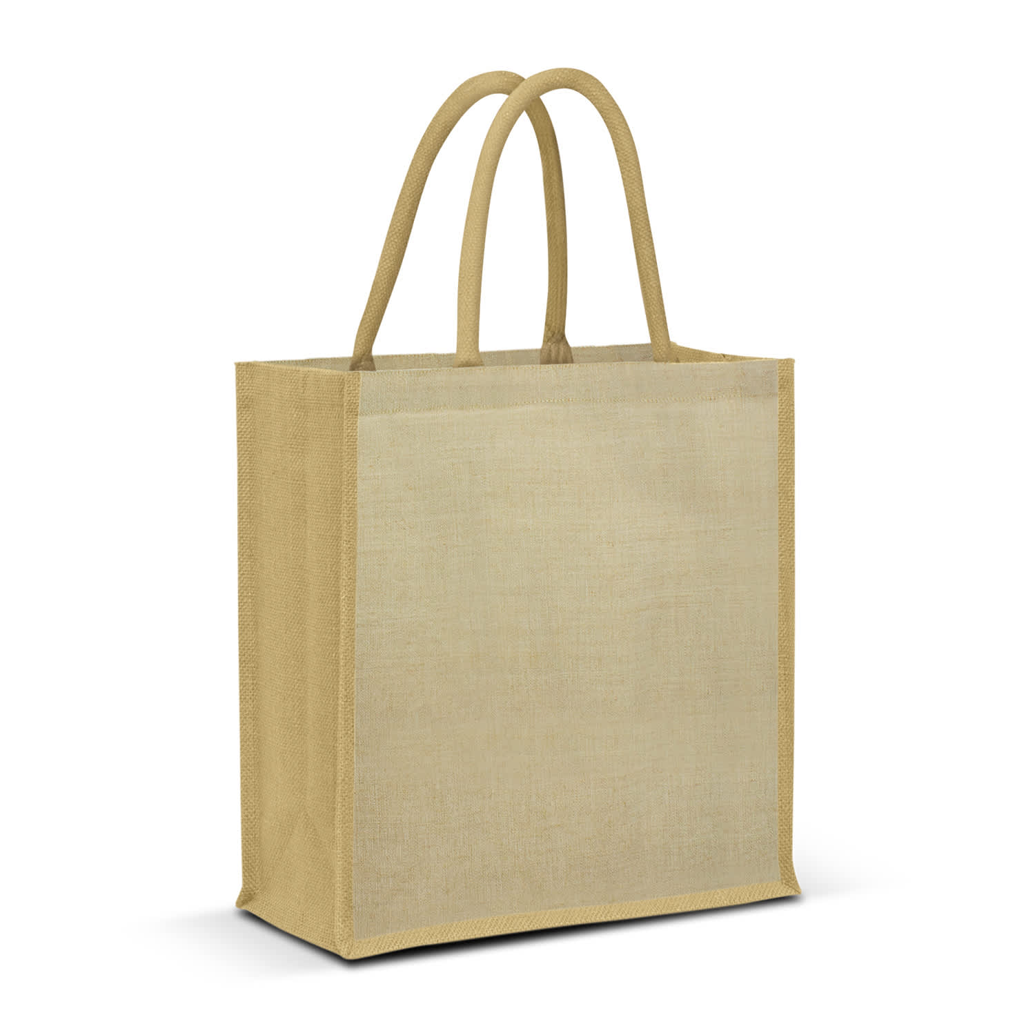 Large laminated juco tote bag with a jute gusset and base which has padded cotton handles. Juco is a versatile and increasingly popular new fabric that is manufactured from a fine blend of natural jute and natural cotton.