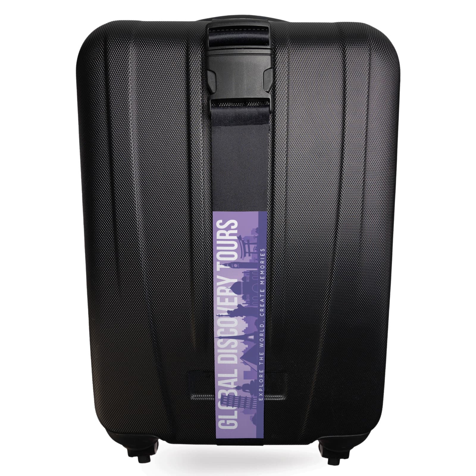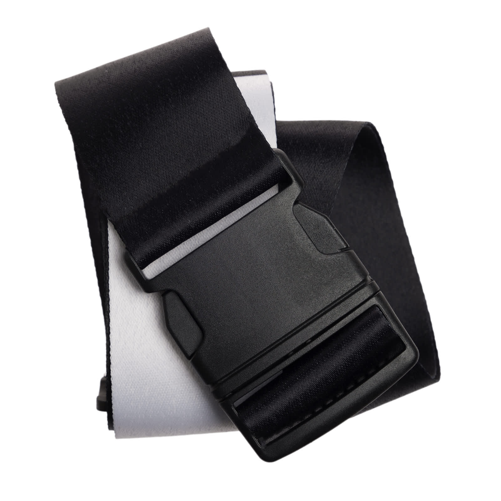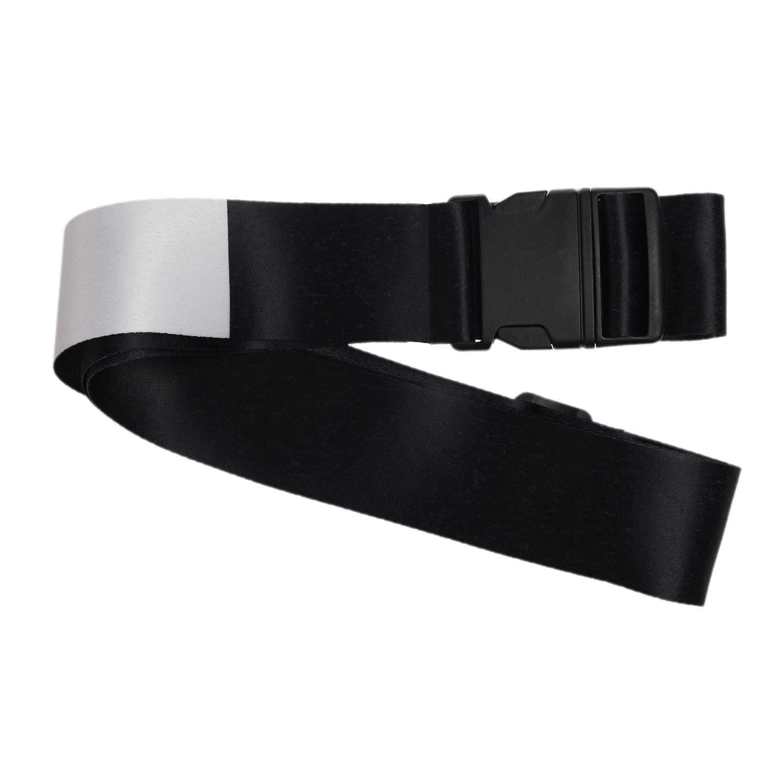 The Adjustable Black Polyester Luggage Strap, your travel essential for added security and easy identification. This strap features a large black plastic snap-lock buckle and measures approximately 175cm x 5cm wide. Each strap includes a blank white segment (245mm long) for full sublimation customisation. Ideal for securing cases and bags in case of zip failure and ensuring quick identification at airports.