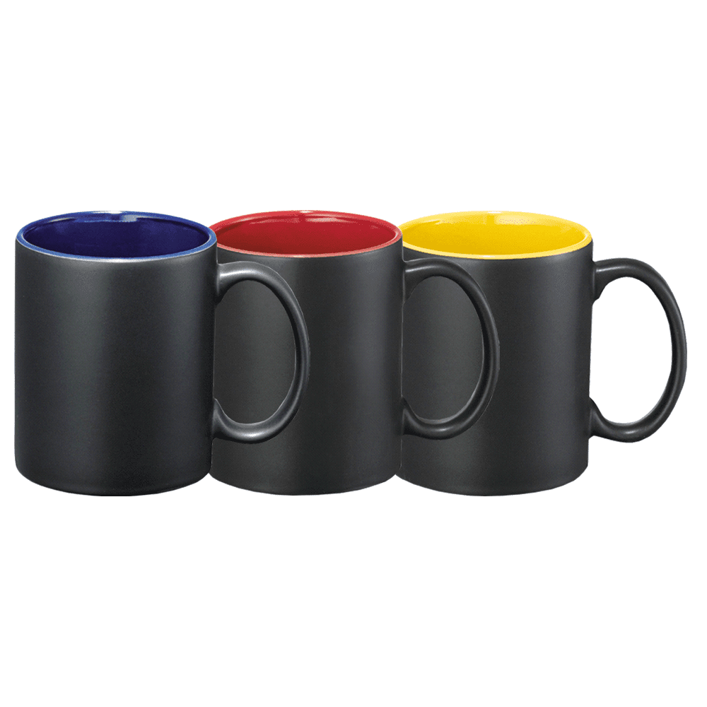 Black matte ceramic mug with interior colour accent and C-handle.