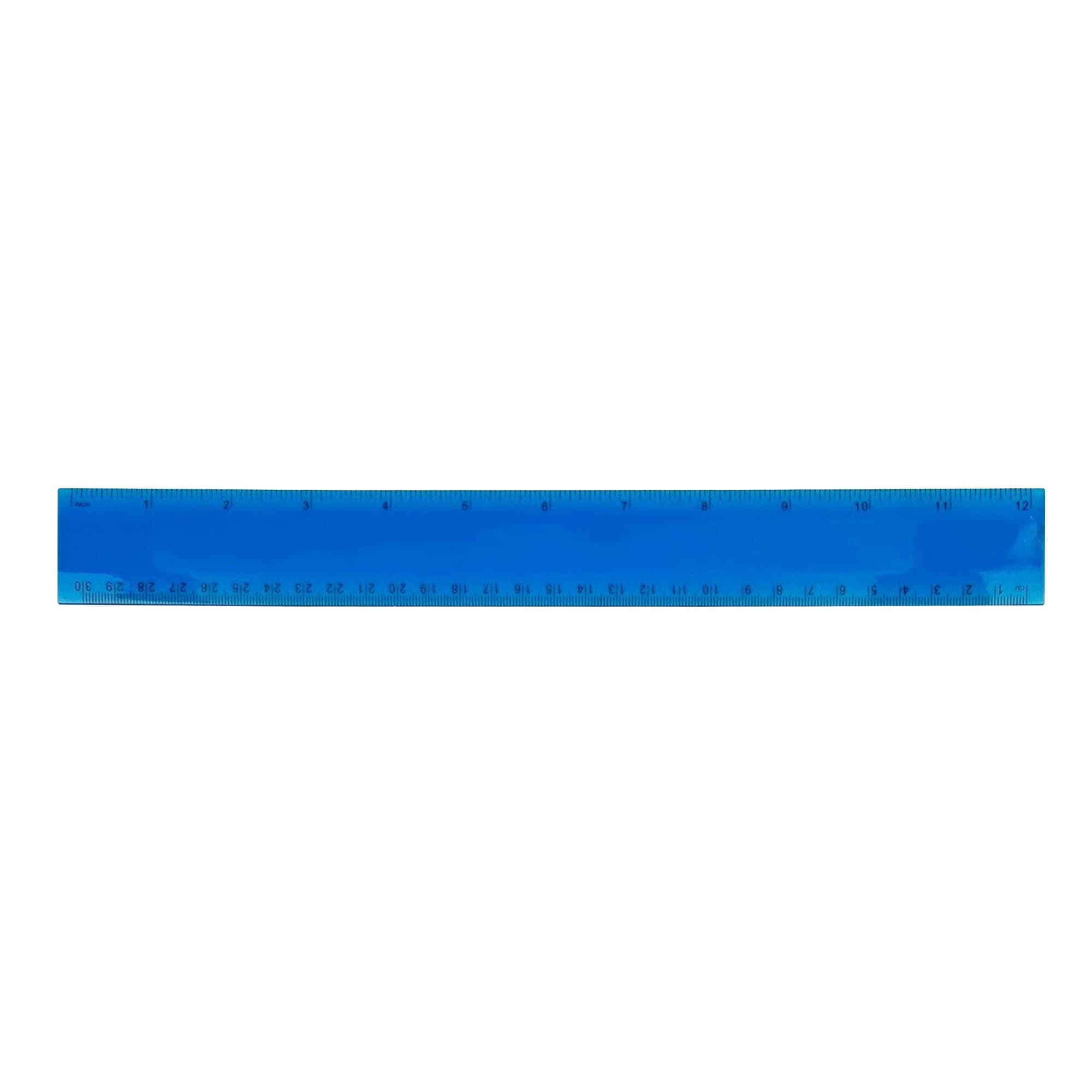 30cm plastic ruler with both sides graduations in centimetres and inches.