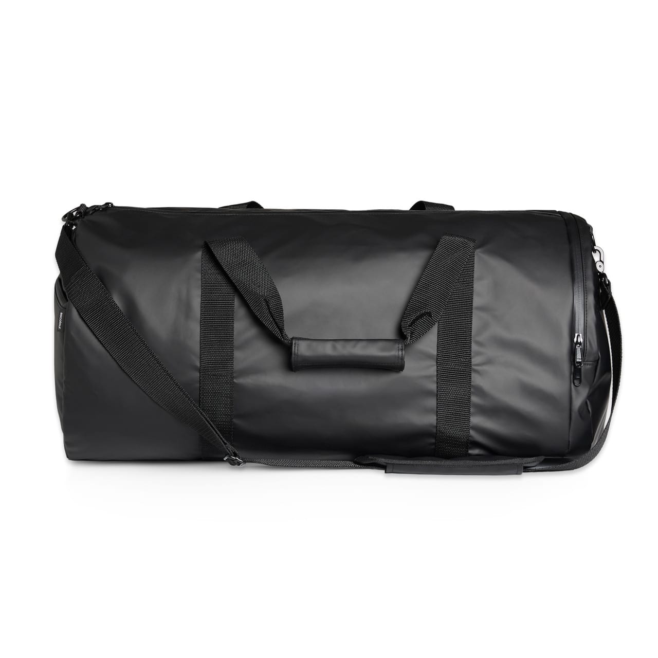 One large main compartment with a small internal YKK zipped compartment, one external YKK zipped shoe compartment, aqua guard zippers on external accesses, reinforced adjustable shoulder strap and handles