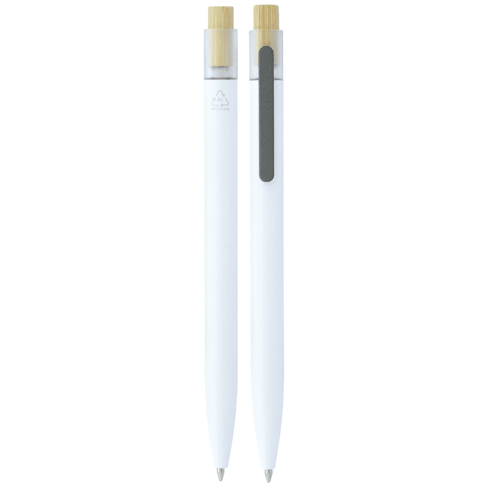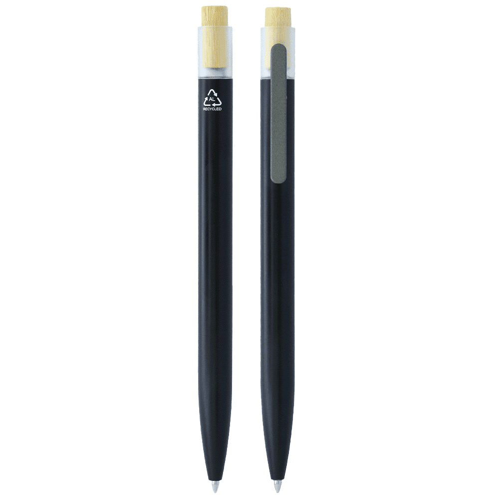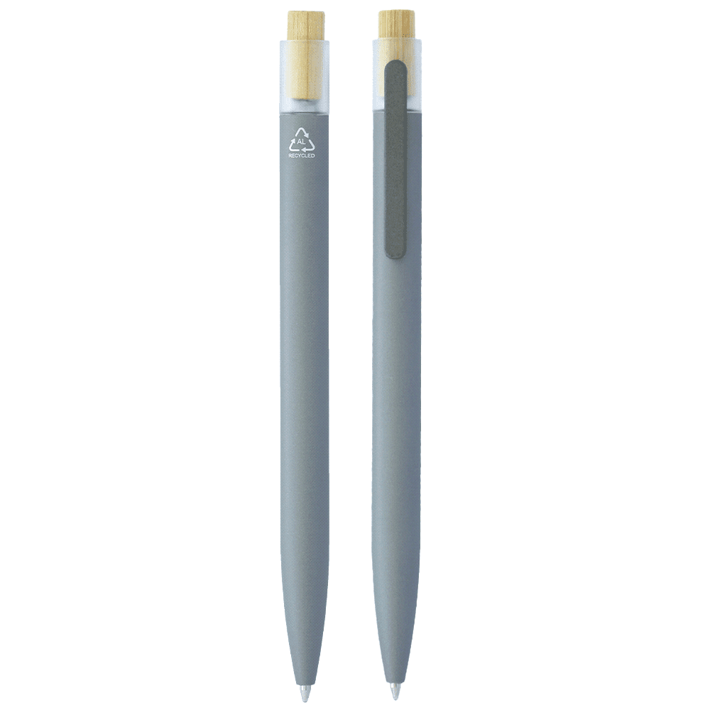 | Features | This stylish pen is made from recycled aluminium, featuring a renewable bamboo plunger, gunmetal stainless-steel clip, and clear RPET recycled plastic contour. It writes smoothly with its fine 0.7 mm ball and high-capacity Parker-style refill, offering an impressive 1800-meter write-out. |