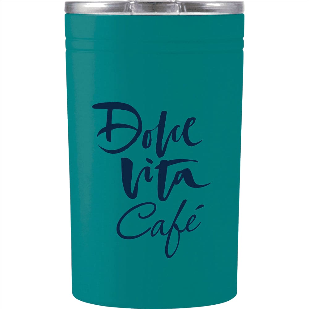 This popular style reusable tumbler features double-walled insulated construction allowing beverages to stay hot for up to 5 hours or cold for up to 15 hours. Capacity 325ml.