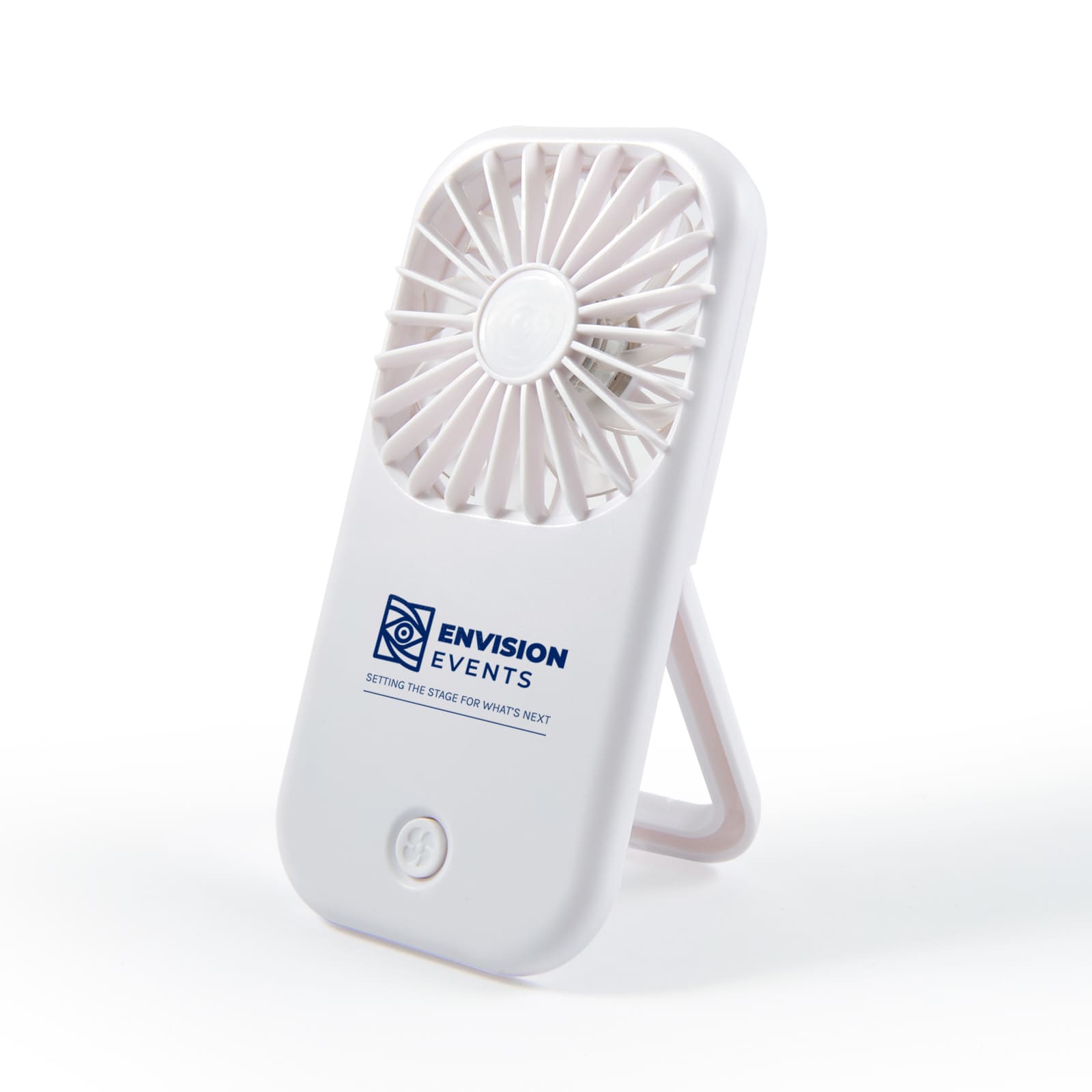 Introducing the Sirocco Fan, your portable cooling solution in white. This battery-operated fan features two speeds and includes a convenient two-position support stand for versatile use. Adjust the fan speed easily with the push button, which also serves as the on/off switch. Each fan comes with three AAA batteries included, and an insulator prevents accidental activation, ensuring safety until removed before use.