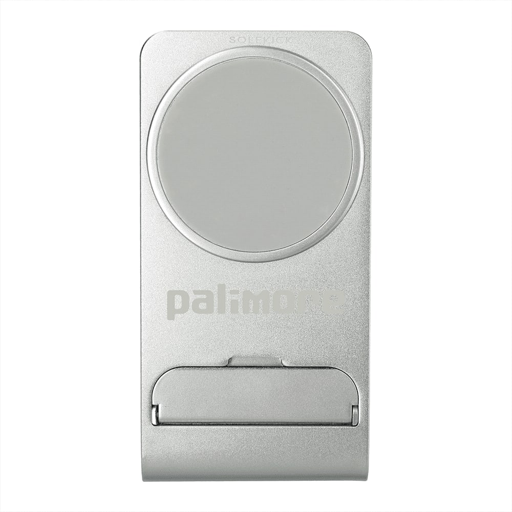 The Solekick™ MagClick™ fast wireless charging stand magnetically holds and wirelessly charges iPhone 12/13 models. For phones without magnetic function, pull out the stand piece to hold it in place for wireless charging.
