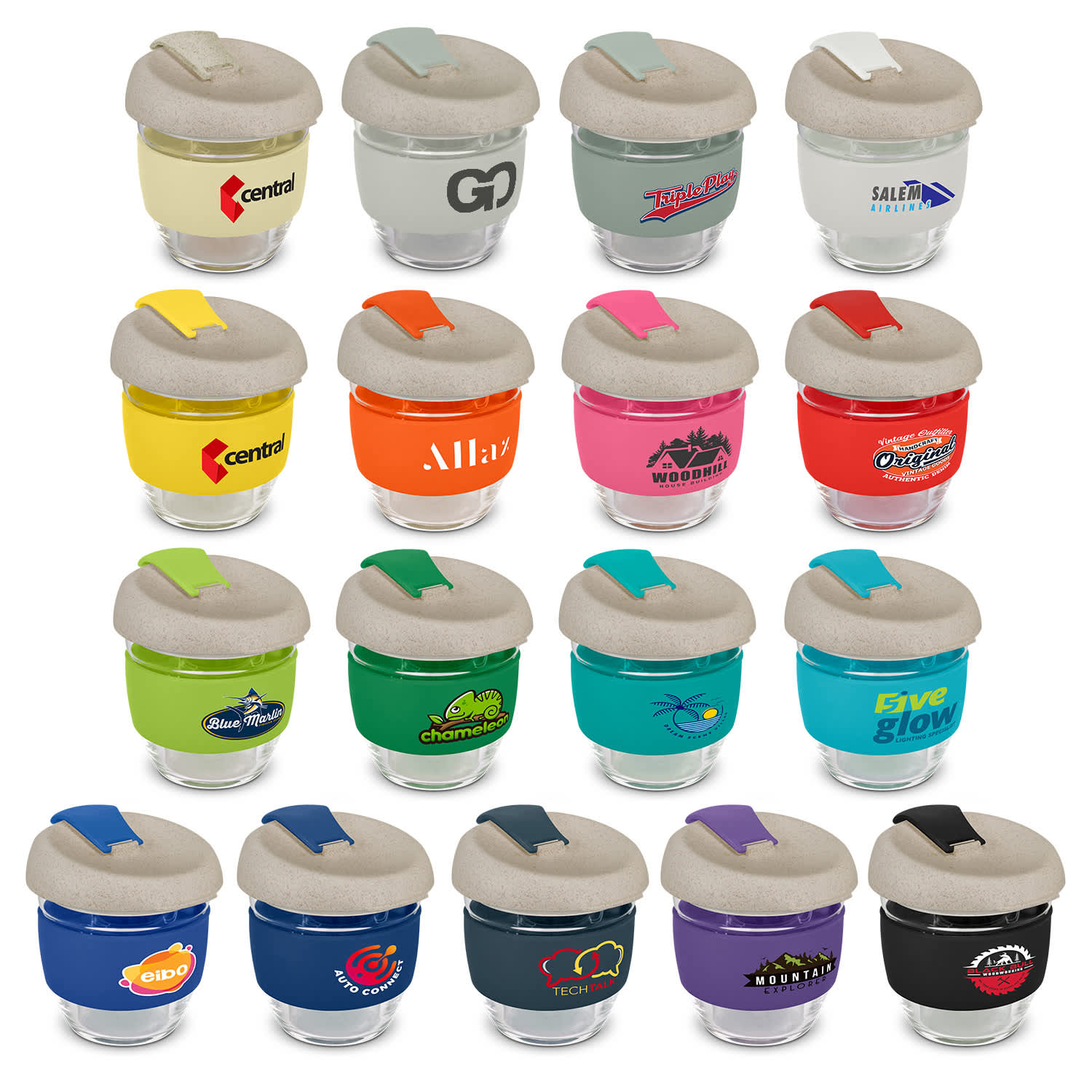 Design inspired 250ml reusable coffee cup that has an incredible story to tell. Manufactured from borosilicate glass, it has a heat-resistant silicone band and a secure push on lid which is manufactured from a 50/50 blend of natural wheat straw fibre and BPA-free polypropylene, with a silicone seal. The flip closure and band can be mixed and matched in any colour combination from the standard colours. Up to five different colour combinations are included in the price and more are available for an additional charge. The cup is presented in a natural gift box with a window to show the branding and product care instructions are printed on one side. An optional gift tube is available on request. This product is not dishwasher safe, and handwashing is recommended. Stellar Cup is protected under New Zealand Design Registration No. 428176 and Australian Design Registration No. 202016235.