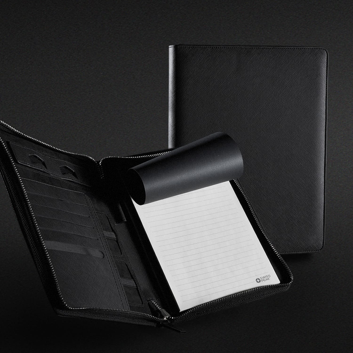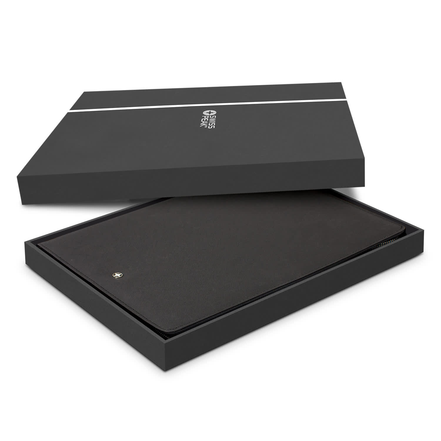 The Swiss Peak Heritage A4 Portfolio speaks the language of modern elegance and design. This deluxe A4 portfolio is manufactured from premium Italian PU and has a silver zip-around closure. The notepad has 20 leaves of quality 80gsm lined cream paper with the Swiss Peak logo tastefully branded on the corner of each page. Other features include a phone stand, a pen loop, five card slots, two elastic loops for holding accessories, a pocket for notes and a folio sleeve for documents. There is a tasteful 3D Swiss Peak badge on the front of the portfolio and it is presented in a smart Swiss Peak gift box.