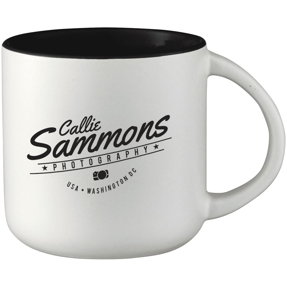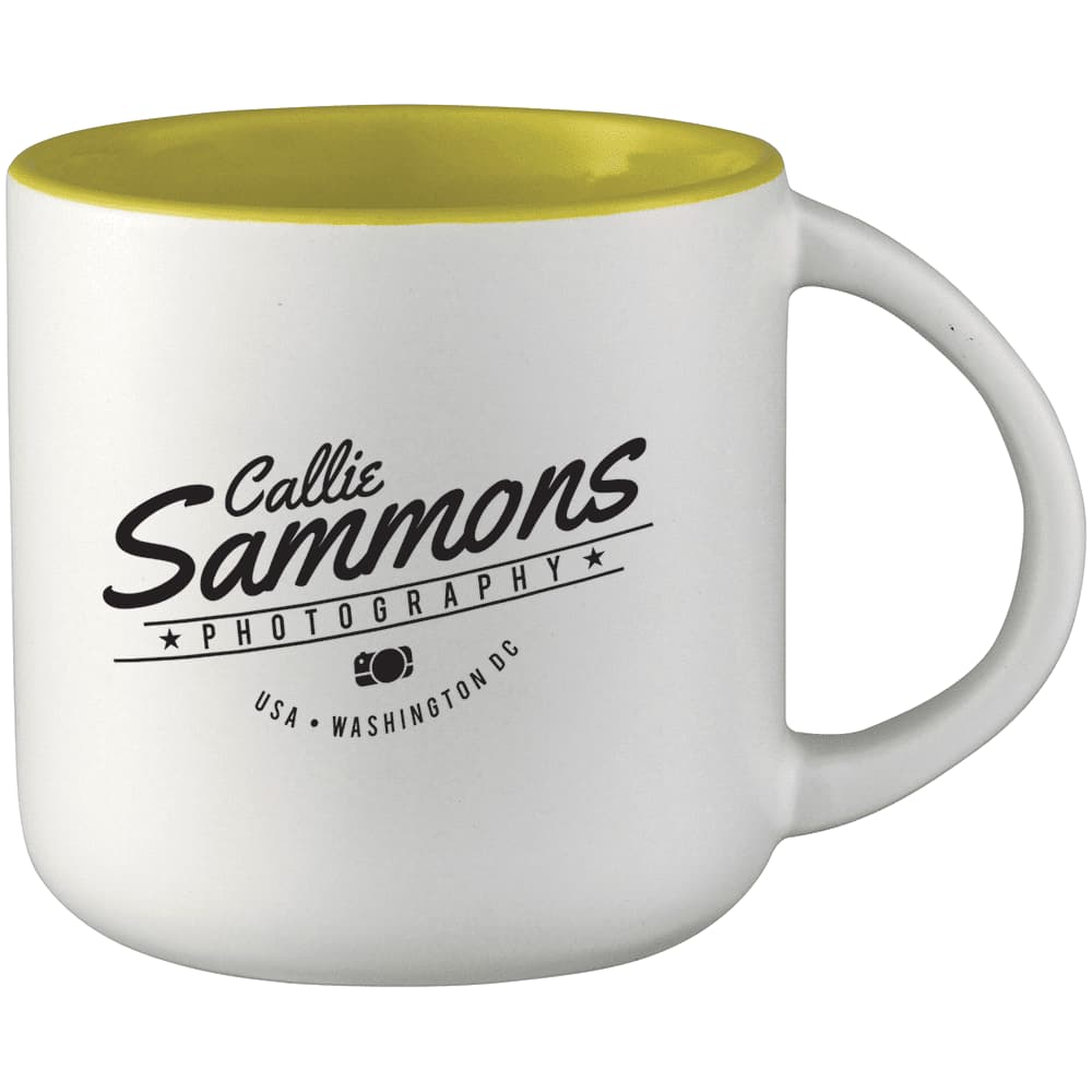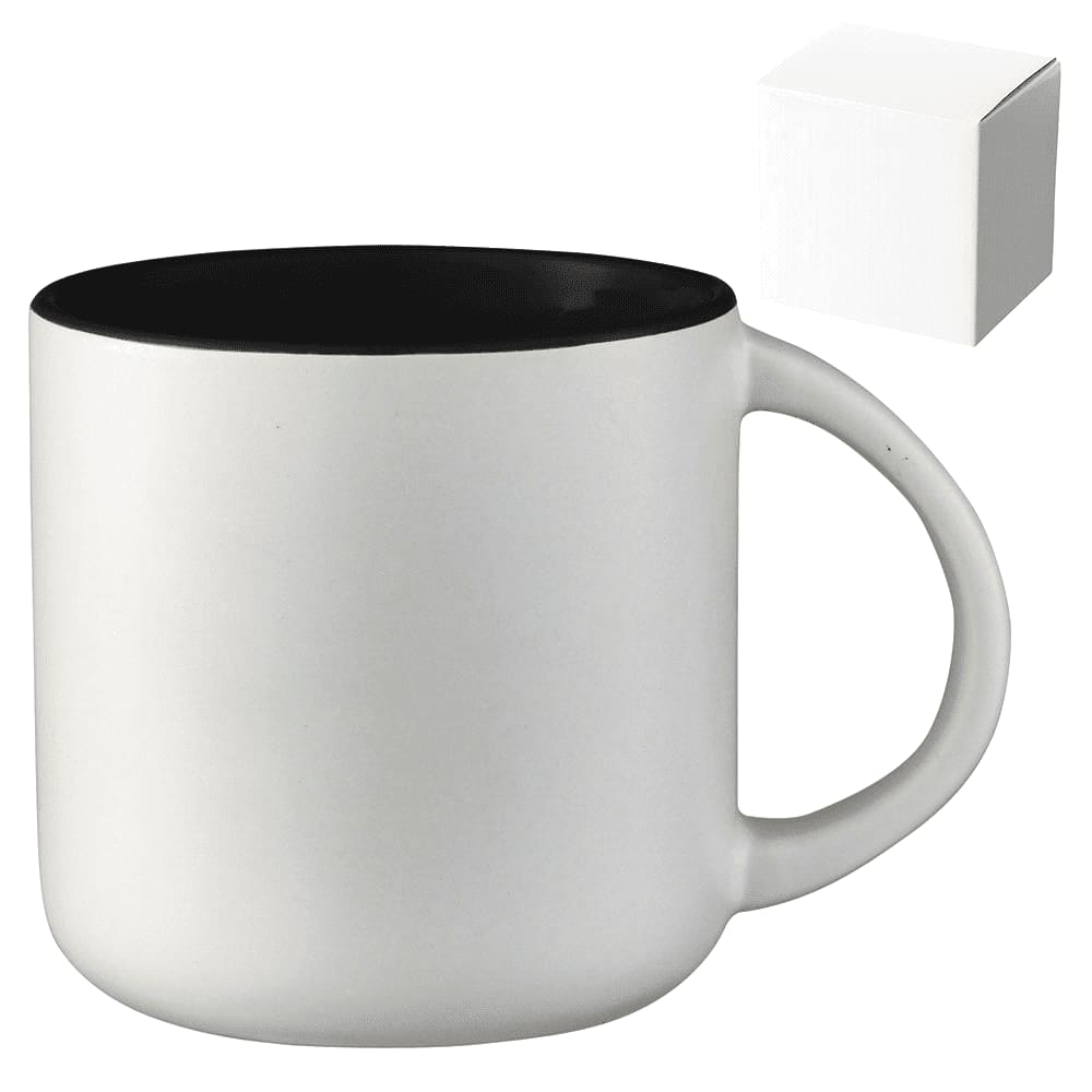 The Tango Ceramic Mug has a matte exterior finish and interior colour accent.