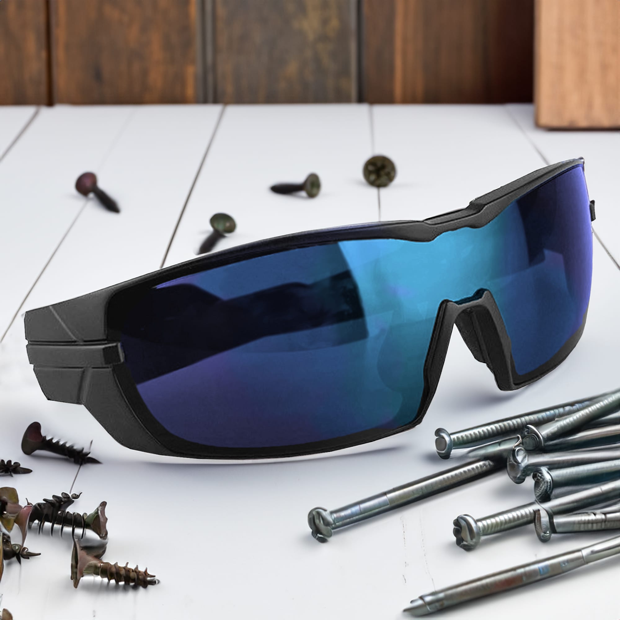 Stylish twist action opening arm sunglasses frame fitted with CE standard 100% UV 400 blue mirror lens and they are REVO mercury film tinted which provides both UVA and UVB protection. Both frame and lenses are made from 100% high quality polycarbonate PC material which provides optimal impact resistance and excellent optical clarity for safety sports and children’s eyewear.